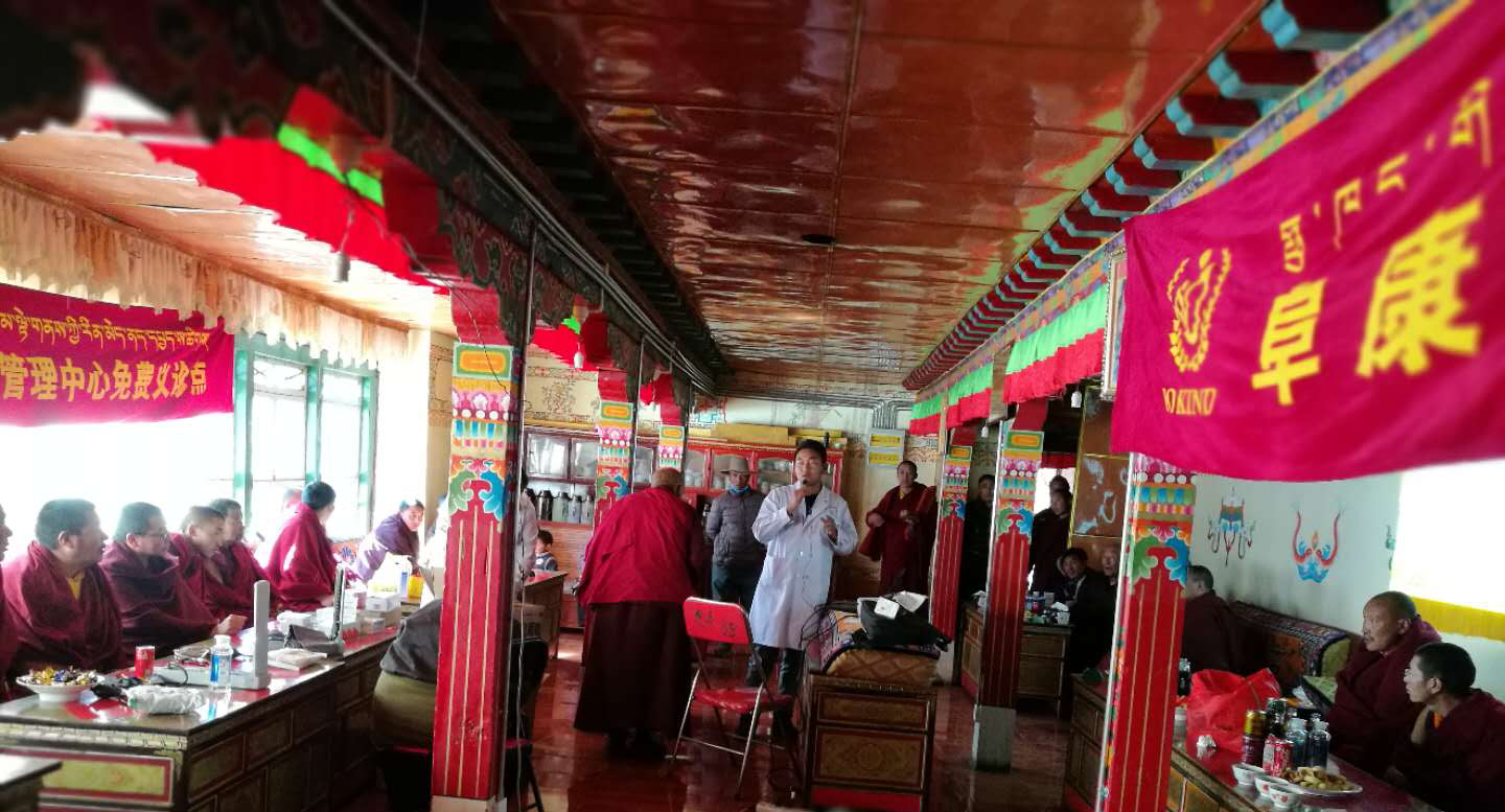 在寺廟佛學(xué)院院長占堆喇嘛的安排下,在一個寬敞的會議室里展開了義診活動,附近的老百姓聽說醫(yī)療義診隊(duì)的到來,也陸陸續(xù)續(xù)地從家里過來。
