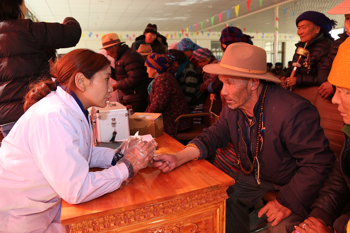 隨后,西藏阜康醫(yī)院義診醫(yī)療隊(duì)開始了義診活動:測血糖、量血壓、拔火罐、問診送藥。老人們求醫(yī)問藥,熱情踴躍,義診醫(yī)療隊(duì)認(rèn)真地接待每一位咨詢者,并細(xì)致聆聽與診斷,耐心解答他們心中的疑問,對需要進(jìn)一步治療的老人提供詳細(xì)的診療指導(dǎo),整個(gè)活動大廳秩序井然,醫(yī)務(wù)人員的細(xì)致和耐心受到了老人們的一致好評。
