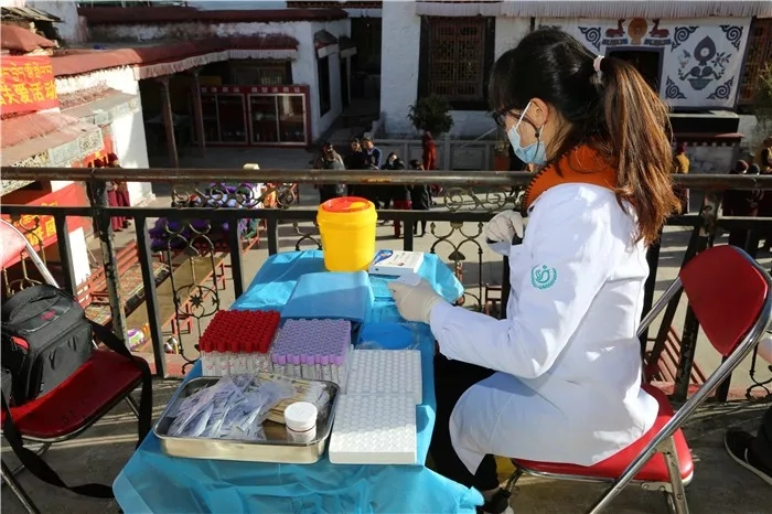 醫(yī)護人員們正在為尼眾和干部們檢查身體