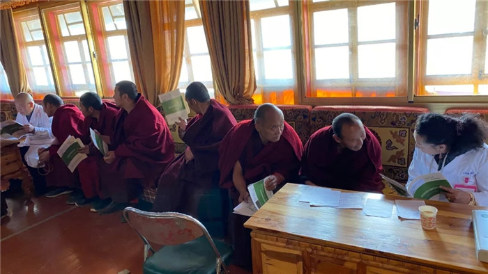 據(jù)了解,甘丹寺管委會安排223名僧侶于2019年12月19日至2020年1月15日來我院體檢中心分批進行了身體檢查,為了方便僧侶們?nèi)∽x報告,西藏阜康醫(yī)院秉持著“用我們的知識和良知為人類健康服務”的企業(yè)宗旨,特意安排專家義診組帶著大家的體檢報告來到寺廟,為大家免費進行報告解讀并針對性的發(fā)放藥物。