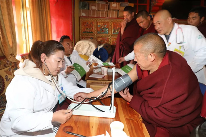 2020年1月19日,受西藏阜康醫(yī)療股份有限公司黨委書記、董事長王斌的委托,在春節(jié)前夕,為甘丹寺僧侶們送醫(yī)送健康,送去阜康新年的祝福。西藏阜康醫(yī)院總院長寧曉帶領(lǐng)阜康醫(yī)院心腦血管院區(qū)及體檢中心專家義診組6名隊員來到甘丹寺,為全寺僧侶發(fā)放、解讀體檢報告,免費測血壓、血糖、氧飽和度,并發(fā)放常見疾病藥品(共計12000余元)。
