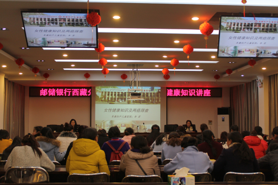 2016年3月7日下午,在三八婦女節(jié)即將來臨之際,我院李君副院長受邀于西藏電信公司及中國郵政儲蓄銀行西藏自治區(qū)分行進(jìn)行女性健康知識、備孕二胎媽媽孕前檢查及“兩癌”篩查健康知識講座,并就女性“宮頸癌”、“乳腺癌”兩大癌癥預(yù)防篩查等健康知識作出詳細(xì)講解。