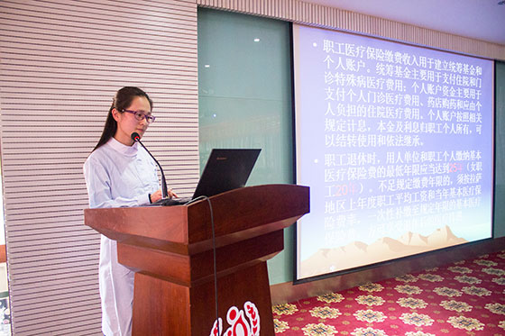 在隨后的醫(yī)保知識(shí)培訓(xùn)中,醫(yī)保辦張燕平同志為新入職的臨床工作人員仔細(xì)講解了包括基本醫(yī)療保險(xiǎn)、門診特殊病、大額醫(yī)療費(fèi)商業(yè)補(bǔ)充保險(xiǎn)、拉薩市醫(yī)療救助“一站式”即時(shí)結(jié)算服務(wù)、新農(nóng)合等有關(guān)醫(yī)保方面的專業(yè)知識(shí),以方便臨床醫(yī)務(wù)工作者在以后的各項(xiàng)實(shí)際工作中能與醫(yī)保進(jìn)行很好的銜接,從而提高醫(yī)院醫(yī)保基金安全使用率,遏制醫(yī)療費(fèi)用的不合理增長,維護(hù)參保人員的合法權(quán)益,促進(jìn)各項(xiàng)醫(yī)療保險(xiǎn)制度更加穩(wěn)妥、有序地發(fā)展。