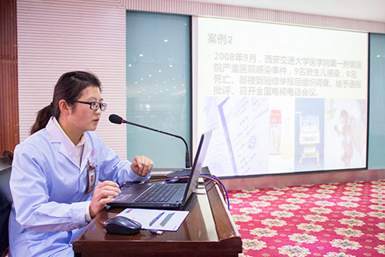 王茹主任隨后就院感定義、院感途徑、院感要求、院感控制、洗手消毒指征與八步洗手法、發(fā)生職業(yè)暴力如何正確應(yīng)對、醫(yī)療垃圾分類、如何應(yīng)對傳染病以及相關(guān)法律法規(guī)等多個要點做了詳細(xì)講解,以讓我們新入職的醫(yī)、技、護(hù)工作人員在以后的日常工作中,能夠更加規(guī)范的完成各自的相關(guān)工作、更加注重與醫(yī)院感染相關(guān)的各項細(xì)節(jié),從而程度地避免我院發(fā)生醫(yī)院感染事件的可能性。