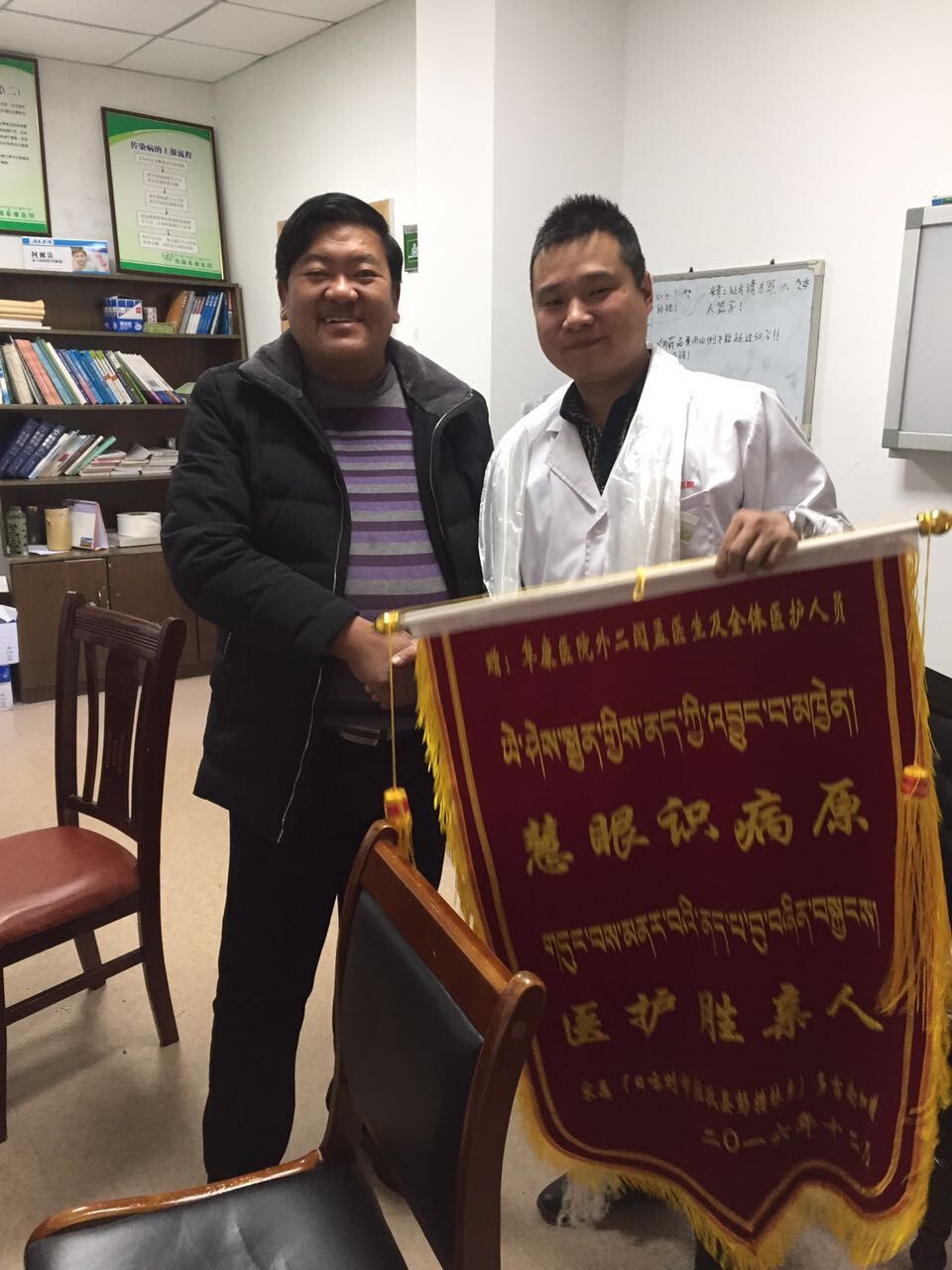 2016年12月1日,患者曲宗出現(xiàn)上腹部疼痛,嘔吐、寒戰(zhàn)、胸悶等癥狀,患者曲宗到地區(qū)醫(yī)院就診,給予輸液治療一天,未見好轉(zhuǎn)。遂來我院,經(jīng)門診檢查診斷為“急性闌尾炎”后收治到外二科,經(jīng)多名外二科醫(yī)生會診后,決定立即為患者曲宗進(jìn)行“急性闌尾炎”手術(shù),手術(shù)非常順利,在醫(yī)護(hù)人員的精心照顧下央宗康復(fù)很快,為表感謝,患者家屬出院時送來錦旗。