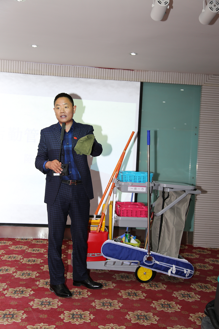 培訓最后環(huán)節(jié),由后勤保障部對所有參會的保潔人員進行現(xiàn)場演示,再次對保潔工具車的配置和掃地機的使用方法進行了詳細的講解,確保每位保潔人員都會熟練使用,達到衛(wèi)生標準。