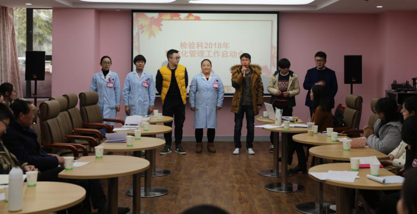 檢驗科新進管理人員集體表態(tài):“我們會服從醫(yī)院領導和科室主任的安排,與科室所有員工一起做好科室精細化管理工作,請院領導,科室主任放心。”