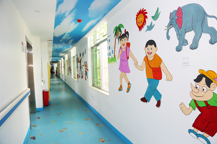 近日,隨著醫(yī)院的改造升級,兒科病房一改往日單調(diào)刻板的面貌,變身童趣十足的游樂園。整個(gè)科室以兒童喜愛的鮮亮色彩作為主色調(diào),并增添了許多人性化設(shè)計(jì),將原來白色墻面豐富為彩色亮麗、充滿童趣的墻體,走廊處畫上了各類卡通圖案,營造了溫馨可愛的氛圍,小朋友們就診時(shí)如同置身于卡通樂園,充分體現(xiàn)了現(xiàn)代化專科醫(yī)院室內(nèi)設(shè)計(jì)的人文理念。