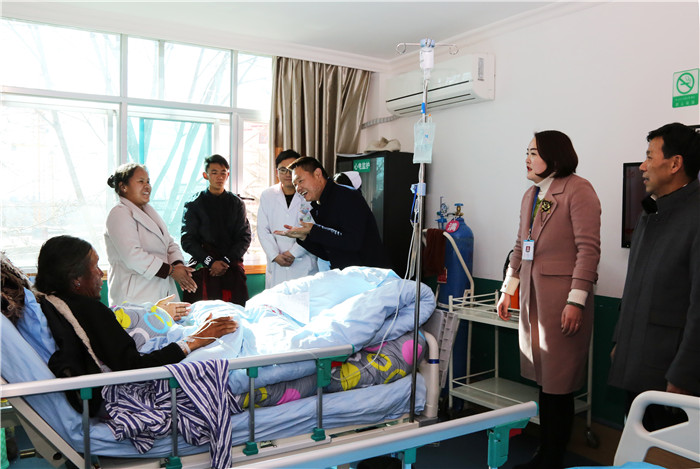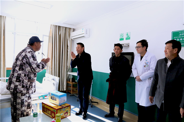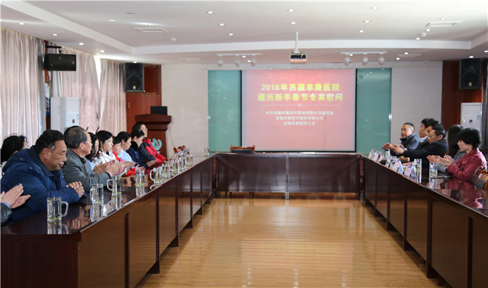 在藏歷新年和新春佳節(jié)來臨之際,2018年2月15日、16日,受公司黨委書記王斌同志委托,由公司黨委副書記、副總經(jīng)理陳彬同志,西藏阜康醫(yī)院院長阿旺建才、西藏阜康醫(yī)院院長歐珠羅布帶隊(duì)的雙節(jié)慰問小組集中慰問春節(jié)期間堅(jiān)守在一線的專家、醫(yī)務(wù)工作人員、行政后勤員工及不能出院與家人團(tuán)聚的患者。為他們送來了董事長的關(guān)心和問候,帶來了新年的美好祝愿和飽含暖暖情誼的慰問禮物。