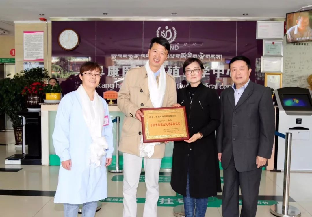 6月6日,西藏自治區(qū)血液中心招募科科長宮玉麗代表自治區(qū)血液中心來到西藏阜康醫(yī)院婦產(chǎn)兒童分院,向西藏阜康醫(yī)藥有限公司頒發(fā)“2012—2013年度全國無償獻血促進獎單位獎”,并向我公司黨委書記、董事長王斌同志頒發(fā)“2012—2013年度全國無償獻血促進獎個人獎” 及“2014—2015年度全國無償獻血促進獎個人獎”。