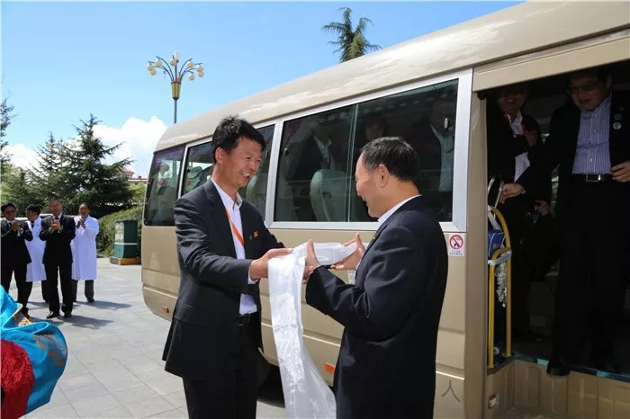 西藏阜康醫(yī)療股份有限公司黨委書記、董事長(zhǎng)王斌同志為蒞臨阜康醫(yī)院考察指導(dǎo)的領(lǐng)導(dǎo)獻(xiàn)上哈達(dá)