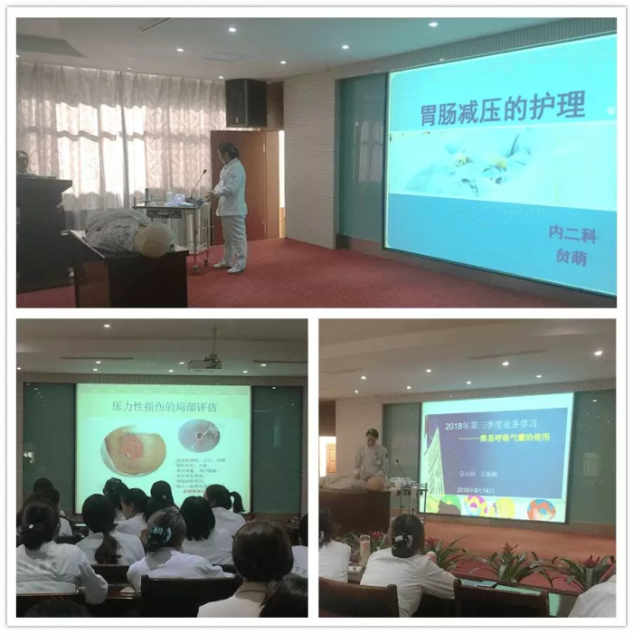 明玲護(hù)士長在此次授課中分享了本科室遇到的壓力性損傷患者的護(hù)理,重點(diǎn)講到“壓力性損傷敷料的使用方法”:各期壓力性損傷敷料的選擇,敷料使用前的皮膚護(hù)理方法、使用中敷料的觀察、使用后創(chuàng)面的效果評(píng)價(jià)。護(hù)士王麗娟、護(hù)士長贠萌分別對(duì)“腸胃減壓的護(hù)理”、“簡易呼吸氣囊的使用”進(jìn)行了生動(dòng)的講解。為鞏固本次培訓(xùn)知識(shí),本次培訓(xùn)內(nèi)容將納入本月底理論考核。