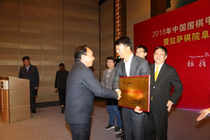 為表彰拉薩棋院阜康職業(yè)圍棋隊(duì)對(duì)西藏體育圍棋事業(yè)做出的巨大貢獻(xiàn),西藏自治區(qū)黨委副書記、主席齊扎拉代表黨委政府向拉薩棋院阜康職業(yè)圍棋隊(duì)領(lǐng)隊(duì)王斌頒發(fā)了“西藏自治區(qū)體育棋類貢獻(xiàn)獎(jiǎng)”!肯定了阜康四年來支持拉薩棋院積極參與全國(guó)各項(xiàng)賽事并為圍棋在西藏的普及發(fā)展所做出的諸多工作。勉勵(lì)王斌繼續(xù)支持西藏的圍棋發(fā)展,一步一個(gè)腳印地做好醫(yī)療衛(wèi)生和體育文化工作。