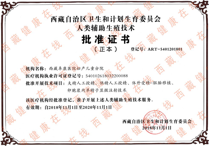 近日,西藏自治區(qū)衛(wèi)生和計劃生育委員會正式下發(fā)文件,確認由西藏阜康醫(yī)院婦產(chǎn)兒童分院生殖醫(yī)學(xué)中心開展的常規(guī)體外受精-胚胎移植(IVF-ET)技術(shù)、卵胞漿內(nèi)單精子顯微注射(ICSI)技術(shù)、夫精人工授精(AIH)及供精人工授精(AID)技術(shù),四項人類輔助生殖技術(shù)校驗合格,同意該中心作為西藏目前開展人類輔助生殖技術(shù)中心繼續(xù)開展相關(guān)技術(shù)的單位。