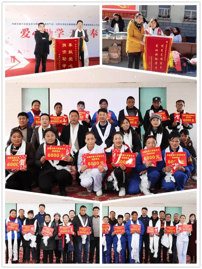 2018年2月11日,西藏阜康天使基金會和西藏阜康醫(yī)院黨委、工會,在新春佳節(jié)來臨之際慰問困難群眾和員工,根據困難程度分別發(fā)放6000元、12000元、60000元不等的慰問金。同年11月,“西藏阜康天使基金會助學助醫(yī)捐贈儀式”在阜康婦產兒童分院舉行,在本次捐贈儀式上,西藏阜康天使基金會為西藏大學政法學院30名貧困學生,每人捐助4000元的生活補貼,總金額為120000元人民幣。通過這些幫扶活動幫助了貧困員工、貧困群眾和學生走出困境、重塑生活,為他們生活注入了新的希望。