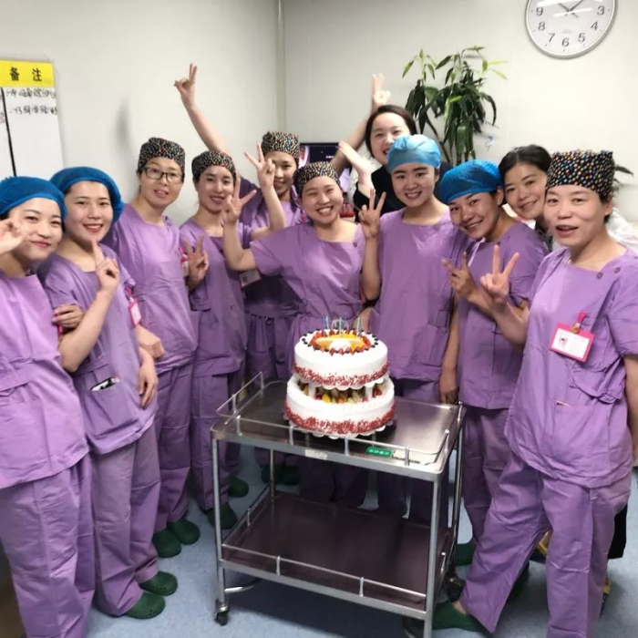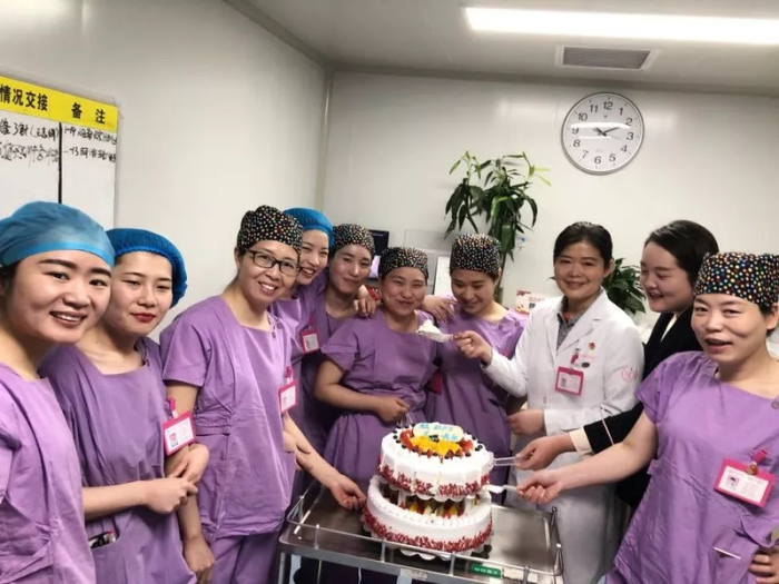 之后,大家一起吹蠟燭,一起切蛋糕,此時(shí)再多的艱辛換來(lái)的是我們美麗助產(chǎn)士真誠(chéng)的笑臉,眼里帶著淚花,此刻她們的付出與堅(jiān)守是值得的。