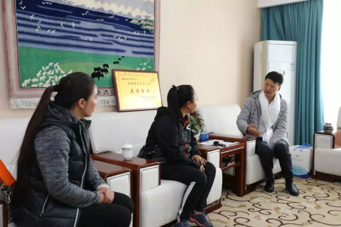 2019年5月14日上午,嘉黎縣扶貧辦主任、脫貧攻堅(jiān)指揮部辦公室副主任才旦卓嘎和嘉黎縣脫貧攻堅(jiān)指揮部轉(zhuǎn)移就業(yè)組負(fù)責(zé)人(副組長(zhǎng))卓央開(kāi)車經(jīng)過(guò)七個(gè)多小時(shí)的長(zhǎng)途跋涉來(lái)到我院,只為親自獻(xiàn)上潔白的哈達(dá),送來(lái)所有鄉(xiāng)親們的問(wèn)候和祝福,向阜康和王斌董事長(zhǎng)表達(dá)深深的感激之情!