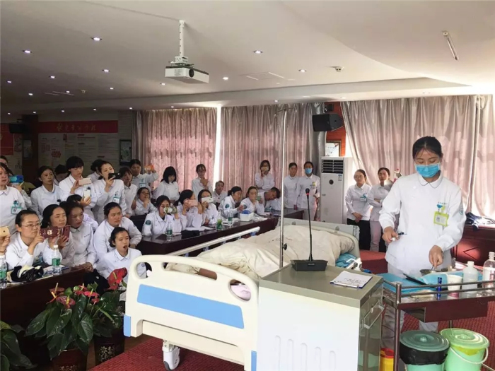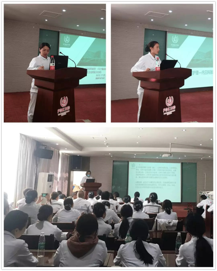 6月19日下午,在院長(zhǎng)助理、護(hù)理部主任李麗的指導(dǎo)下,我部組織了阜康醫(yī)院共62名護(hù)理人員在阜康婦產(chǎn)兒童醫(yī)院四樓會(huì)議室開展了以“口腔護(hù)理”、“血糖監(jiān)測(cè)”、“查對(duì)制度、交接班制度、安全輸血制度、護(hù)理糾紛防范及處理”的相關(guān)培訓(xùn)。內(nèi)三科護(hù)士長(zhǎng)張穎結(jié)合科室遇到的口腔護(hù)理操作,針對(duì)口腔護(hù)理用物準(zhǔn)備、口腔護(hù)理的適應(yīng)癥、常用溶液的作用、口腔護(hù)理的操作流程等方面進(jìn)行了講解;外二科護(hù)士長(zhǎng)陳群就血糖監(jiān)測(cè)結(jié)合臨床經(jīng)驗(yàn)針對(duì)血糖監(jiān)測(cè)的目的,操作流程及對(duì)糖尿病患者的健康宣教進(jìn)行講解;治療室護(hù)士長(zhǎng)尹文雋在講解制度中再三強(qiáng)調(diào)我們護(hù)理操作中要時(shí)刻銘記“患者需求至上”的核心價(jià)值觀,做到患者安全、護(hù)理安全,全心全力為患者服務(wù)。