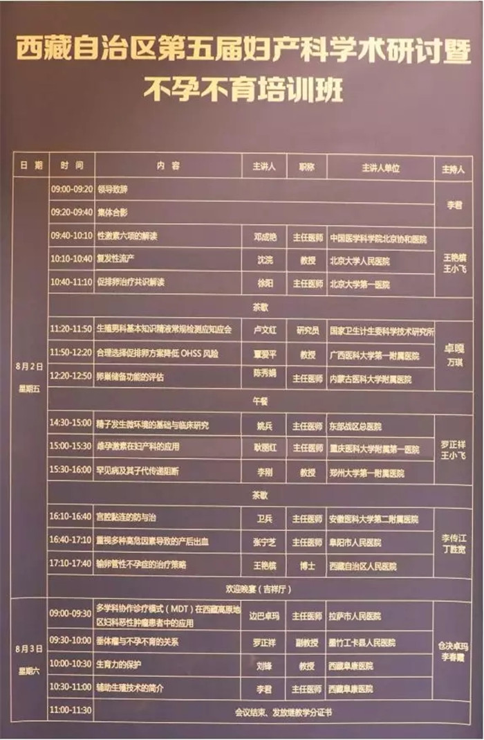 西藏自治區(qū)第五屆婦產(chǎn)科學(xué)術(shù)研討會暨不孕不育培訓(xùn)班日程安排