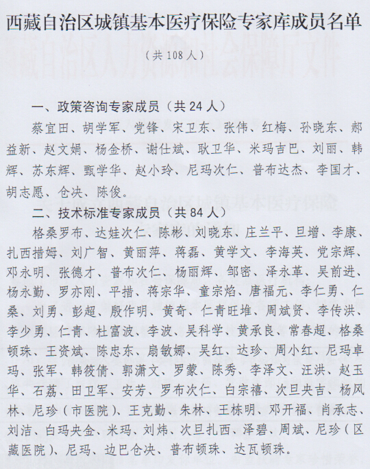 附件:西藏自治區(qū)城鎮(zhèn)基本醫(yī)療保險庫專家名單