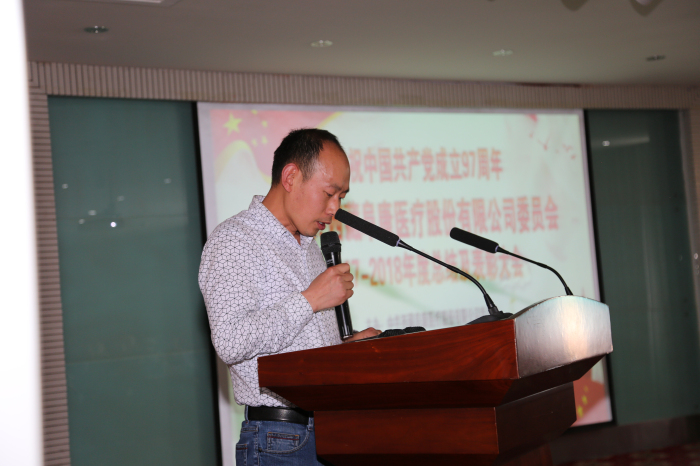 6月29日,“慶祝中國共產(chǎn)黨成立97周年暨中共西藏阜康醫(yī)療股份有限公司委員會2017-2018年度總結及表彰大會”在阜康婦產(chǎn)兒童分院4樓會議室隆重召開。公司黨委書記王斌,區(qū)黨委組織部組織四處(兩新工委辦公室)負責人沈策,公司黨委副書記陳彬、黨委委員劉瀟瀟、劉連福、楊國洪及全體黨員參加會議。