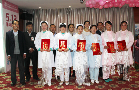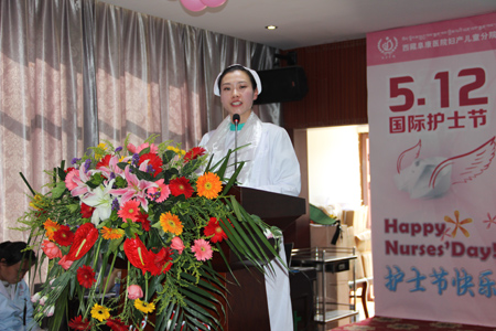 下午是“5.12國際護(hù)士節(jié)”慶?;顒樱ツ暌粯永星趦€節(jié)約只是搞了一個簡單地茶話會,但是滿桌的水果,粉紅色的節(jié)日慰問語,美麗的鮮花都是院領(lǐng)導(dǎo)對護(hù)士姐妹們最由衷的節(jié)日慰問。本次慶?;顒觿t瀟總經(jīng)理、陳彬總經(jīng)理、張德才院長、敖德秀副院長、劉連福副院長、李君副院長、張治副院長應(yīng)邀出席,他們紛紛致辭感謝全院護(hù)士這一年的辛苦工作,并對她們寄予厚望,希望白衣天使們,銘記“患者需求至上、團(tuán)隊精誠協(xié)作”的院訓(xùn),緊跟時代步伐,克服護(hù)理工作量大、人員緊張等諸多困難,齊心協(xié)力,努力工作,再創(chuàng)佳績。