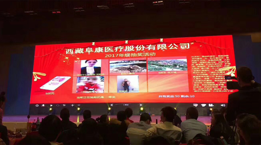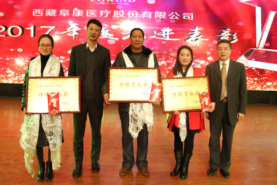 2018年1月10日,西藏阜康醫(yī)療股份有限公司新年團拜會在拉薩洲際酒店舉行,下午四點來自西藏阜康醫(yī)院、婦產(chǎn)兒童分院、心腦血管分院、健康體檢中心,阜康大藥房、超市的員工陸續(xù)來到會場。下午五點,主持人劉連福院長宣布會議正式開始,場內(nèi)音樂響起,董事長王斌帶領(lǐng)醫(yī)院領(lǐng)導和特邀嘉賓入場,會場立刻響起雷鳴般的掌聲和歡呼聲。