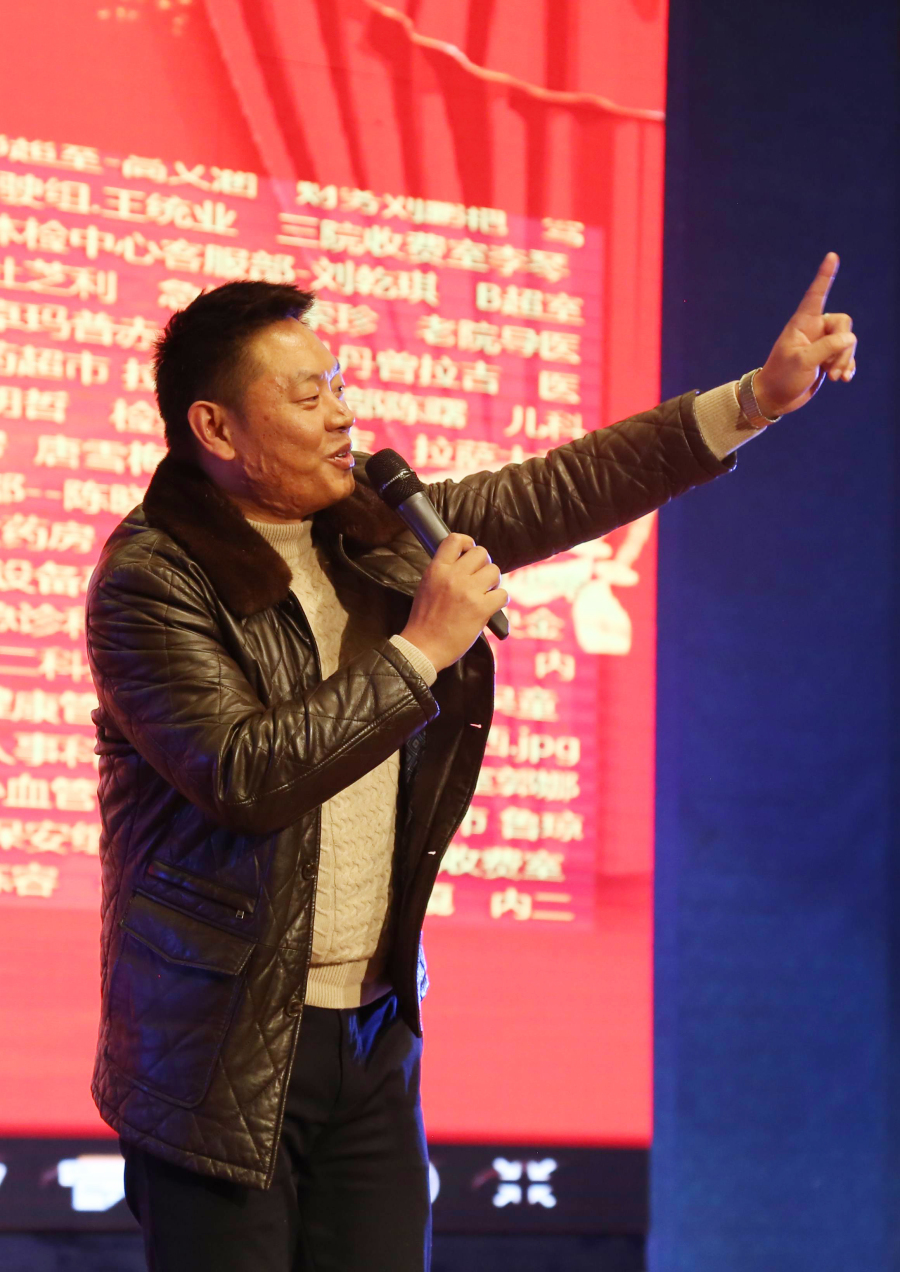 隨后,董事長王斌走上講臺飽含激情地說“我之存在,因為有你”,并向所有來賓鞠躬致謝。董事長王斌講述了阜康發(fā)展史、阜康人的奮斗史,從2005年的47名員工到現(xiàn)在的1024名員工,并再次感謝一路伴隨阜康成長的所有人,還指出2018年是阜康發(fā)展史上很關(guān)鍵的一年,要早計劃、早安排、早部署,要以十九大精神為指導,堅持科學發(fā)展觀,早日把阜康建設(shè)成為現(xiàn)代化醫(yī)院。