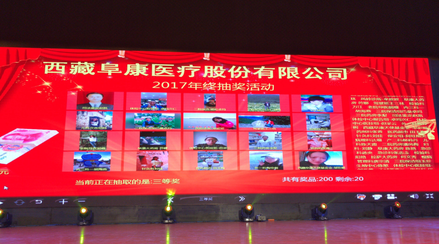 抽獎環(huán)節(jié)更是讓年會進入高潮,帶動了全場同仁,1000多張個人照在大屏幕上不停滾動著,隨著一聲聲地叫停,畫面一幕幕定格,一批又一批幸運兒誕生了,歡呼聲、笑聲、掌聲、吶喊聲此起彼伏,匯成歡樂的海洋,為獲獎者祝福,為自己祝福,為阜康來年會更好而祝福!剛參加完“拉薩市政協(xié)會議”的陳彬副總經(jīng)理也在第一時間趕到現(xiàn)場與大家聯(lián)歡,并為大家抽取今天的一等獎,大家翹首以盼,現(xiàn)場氣氛頓時沸騰起來。本次共抽出三等獎200名,二等獎50名,一等獎20名。
