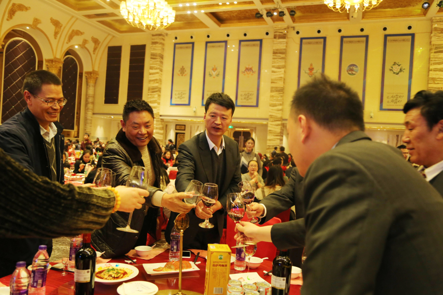 晚宴尾聲,董事長王斌邀請所有院級領(lǐng)導上臺共同舉杯說:“希望大家在新的一年繼續(xù)沿著創(chuàng)新的道路團結(jié)一致、規(guī)范管理、用心服務,開源節(jié)流地做好自己本職和醫(yī)院的工作。我相信,在各位阜康同仁的共同努力下,2018年我們一定會保質(zhì)、保量完成工作計劃。為保障西藏自治區(qū)廣大人民群眾的身體健康做出新的更大的貢獻,促進醫(yī)院健康、持續(xù)、穩(wěn)步地向前發(fā)展,更上一層樓,再鑄新輝煌! ”