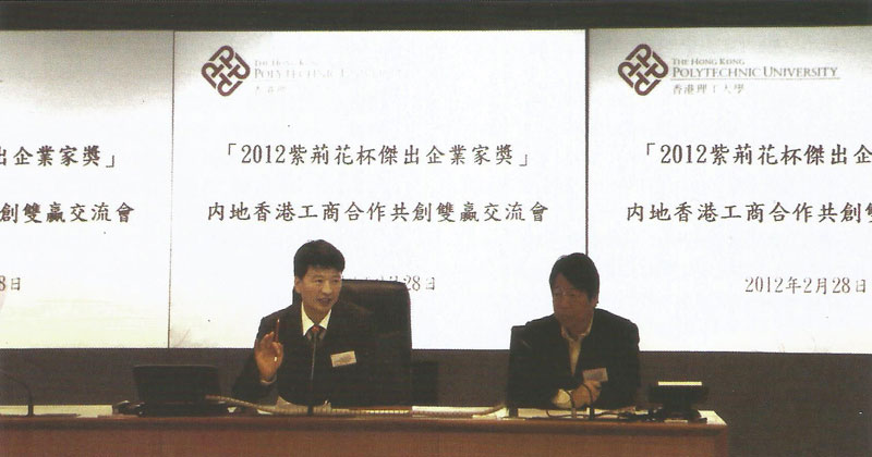 “2012年紫荊花杯杰出企業(yè)家獎(jiǎng)”的頒獎(jiǎng)典禮正在進(jìn)行,主禮嘉賓香港特別行政區(qū)立法會(huì)主席曾鈺成先生,特邀嘉賓中央港理工大學(xué)校長(zhǎng)唐偉章先生共同啟動(dòng)了2012紫荊花杯杰出企業(yè)家獎(jiǎng)亮燈儀式。曾鈺成先生發(fā)表了熱情洋溢的講話,他對(duì)12位中國(guó)內(nèi)地的獲獎(jiǎng)企業(yè)家表示祝賀,為此次海內(nèi)外民營(yíng)企業(yè)家的盛會(huì)開(kāi)啟序幕。