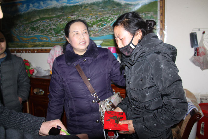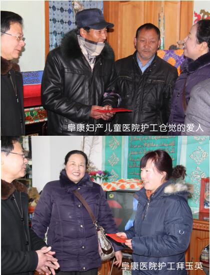 阜康集團(tuán)在2013年春節(jié)、藏歷年來臨之際,在阜康醫(yī)院、阜康婦產(chǎn)兒童醫(yī)院、阜康(國際)健康體檢中心三家醫(yī)院開展了“進(jìn)職工門、知職工情、暖職工心”送溫暖活動(dòng)。1月22日,公司下發(fā)了《關(guān)于開展2013年“雙節(jié)”送溫暖及特困職工幫扶活動(dòng)的通知》;2月1日,三個(gè)醫(yī)院的院領(lǐng)導(dǎo)對提交申請的員工進(jìn)行了資格審查,并最終確定了9名符合條件的員工為此次送溫暖活動(dòng)對象;2月3日,由阜康醫(yī)院李鋼副院長、劉連福副院長、阜康婦產(chǎn)兒童醫(yī)院呂果梅副院長、阜康(國際)健康體檢中心席大力副院長帶隊(duì),逐一將慰問金、大米食用油等慰問品送到了困難員工的家中。阜康婦產(chǎn)兒童醫(yī)院保潔員窮達(dá)的父母在她年幼時(shí)已經(jīng)過世,由于沒有文化,她只能選擇當(dāng)清潔工養(yǎng)家糊口,每月不到兩千塊錢的工資要供養(yǎng)弟弟妹妹上學(xué),要給弟妹生活費(fèi)、購買學(xué)習(xí)資料的費(fèi)用,偶爾還要給弟妹買身新衣服,帶他們吃一頓好吃的,買一些營養(yǎng)品。為了省下在外租房的錢,她選擇了入住醫(yī)院的員工宿舍,每天吃、住、上班都在醫(yī)院,她現(xiàn)在最大的心愿就是好好供養(yǎng)自己的弟弟妹妹上學(xué),讓他們考上大學(xué)有一個(gè)美好的前程,不用像自己一樣干最累的活掙最少的錢。窮達(dá)是一個(gè)愛笑的女孩子,即使說起這些困難時(shí)也總是堅(jiān)信只要弟弟妹妹有出息了,以后的日子就會(huì)好起來,她的樂觀向上時(shí)刻感染著身邊的每一個(gè)人,然而當(dāng)院領(lǐng)導(dǎo)將慰問金慰問品送到她手中時(shí),這個(gè)堅(jiān)強(qiáng)的女孩卻第一次在人前落了淚。阜康婦產(chǎn)兒童醫(yī)院保潔員曲宗租住在奪底路某個(gè)環(huán)境極差的小院子里20平方不到的出租房里,這樣的一間小房子是臥室是客廳也是廚房,然而生活的艱辛卻比不上她不幸的遭遇,她的丈夫沒有工作,一家人的生活全靠她微薄的工資,如果僅僅是如此還算差強(qiáng)人意,她那個(gè)不務(wù)正業(yè)的丈夫卻還經(jīng)常向她伸手要錢到外面去賭博、喝酒,一旦拒絕便是拳腳相向,且多次將她打得無法上班,甚至將她悄悄存起來的錢偷拿去喝酒賭博,每每說起這些事情,曲宗便是淚流滿面,無法自持,讓聞?wù)邿o不為之心酸。