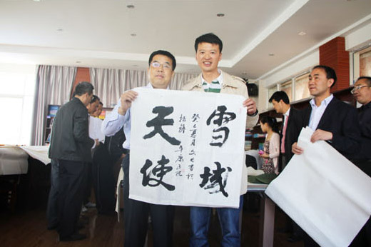 董昭禮主席對此非常高興地說:“感謝在西藏工作的安徽人士的熱情款待,也感謝阜康集團為我們提供書畫交流的場所,更感謝王斌董事長的細心照顧。扎西德勒!