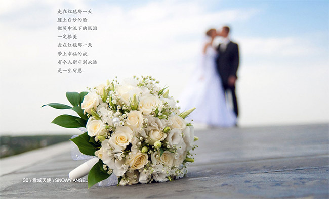 婚禮當天,陰沉了許久的家鄉(xiāng),突然艷陽高照,母親說:“女兒要岀嫁了,這是老天爺給的驚喜。”女眷們陪著我在房間里裝扮,老人們則不停地為我們說著祝福的話。正午時分,裝扮姣好的我和老公在父母的陪同下出現(xiàn)在親友面前,一片掌聲為我們晌起。司儀帶著父母、公公婆婆、我和老公為到場親友敬酒,高喊著:“這是屈家的二女兒,今天就要出嫁了,旁邊這位是就是二女婿,請親友鄉(xiāng)鄰們?yōu)樗麄冏鱾€見證,為他們祝福,祝他們百年好合,早生貴子。”掌聲再次響起,此時我的心情真不知如何形容,眼前的父母撫育我長大,眼前的親友見證我成長,今天的我翻開人生新的篇章,此時百感交集,千言萬語匯成一行淚。