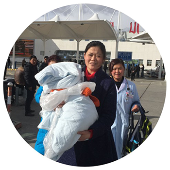 2015年13日下午5時(shí)15分,“臨時(shí)媽媽”姜子珍抱著小丹增走出機(jī)場(chǎng)候機(jī)大廳,等待在外的西藏阜康醫(yī)院婦產(chǎn)兒童分院的醫(yī)護(hù)人員立即趕上前去檢查小丹增的身體狀況。小丹增在出院前已經(jīng)做了全面的身體檢查,脫離了生命危險(xiǎn),目前身體非常健康。