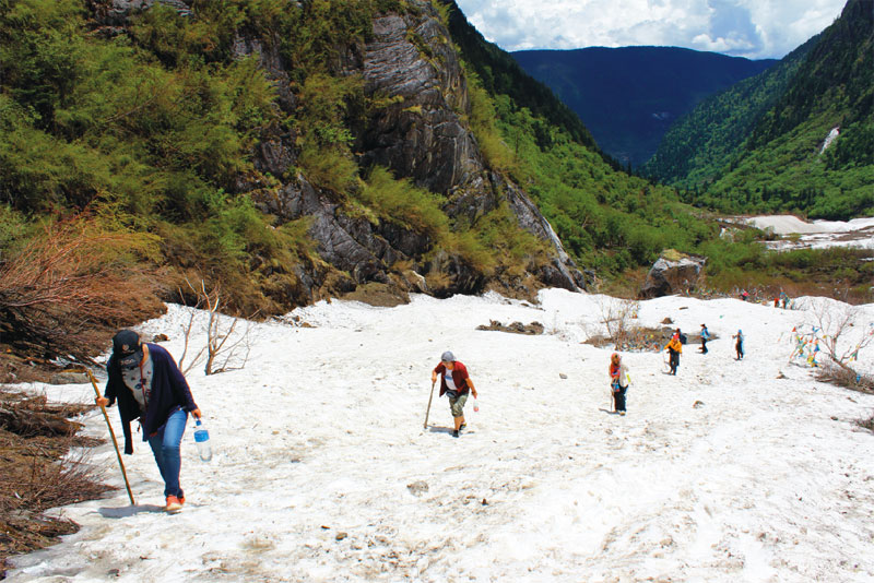 益西是從客棧出發(fā)后兩個(gè)小時(shí)到達(dá)的一處二十多米高的塌方區(qū)摔下去的,與她結(jié)伴的張見她滑落后,毫無(wú)猶豫也抱著頭跟著跳了下去。最后在塌方區(qū)的底部找到了已半昏迷狀態(tài)的益西,不知道他們倆是怎么攙扶著從崖下爬上大路的,又是如何拖著傷痛的身子在崎嶇蜿蜒、凹凸不堪的山路河溝走了兩個(gè)小時(shí)走回客棧的。