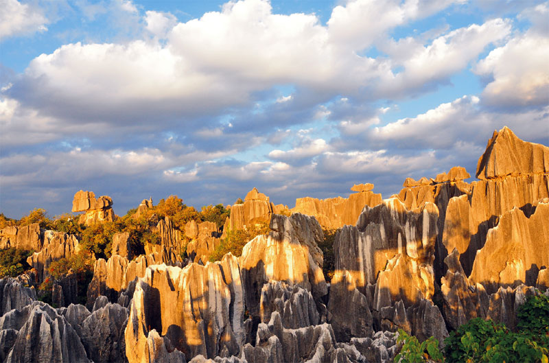 石林是最后一站(赫然發(fā)現(xiàn)小時(shí)候大爸煙盒上的畫兒就是石林)。大自然鬼斧神工,造化神秀,參天的巨石中開辟出僅一人的路來,一片石頭形成了一方小小的世界,這里是石頭的王國。石林的石頭據(jù)說和周圍地質(zhì)都不同,也許是天外來石?悄悄地?fù)炝艘恍K帶回家。在石林前穿著少數(shù)民族服裝來了個(gè)全家福。
