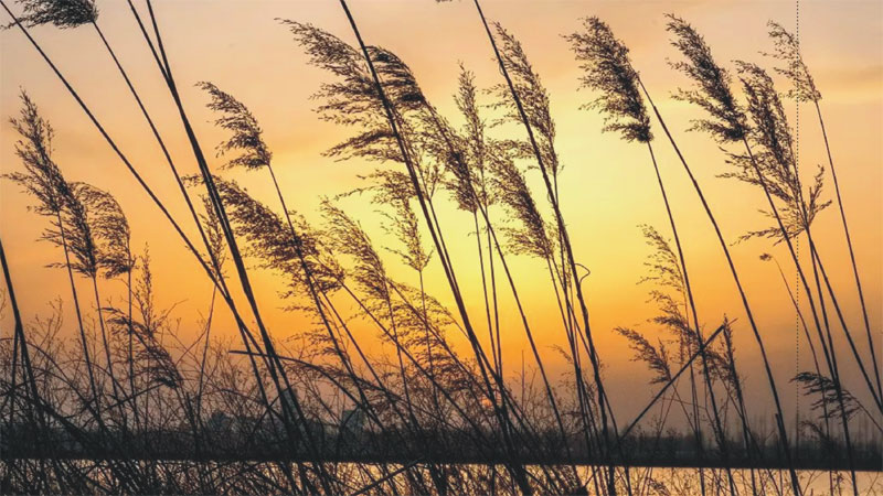 秋天,我最愛在蘆葦蕩里捉迷藏,每年那里橫七豎八的“小路”,都是我們最先踏出來的。當(dāng)蘆葦抽穗,一片泛白的時(shí)候,我和哥哥喜歡用蘆穗編成的草帽,一旦戴在頭上,我們就成了一個(gè)個(gè)上躥下跳的“白頭翁”。到了深秋,蘆葦已成熟,開出大團(tuán)大團(tuán)的葦絮,漫天飛舞的蘆花,似提前降臨的大雪,洋洋灑灑,它們輕盈地四處飛揚(yáng),落在河面上、村子里。我常拎著魚鱗口袋到蘆葦蕩深處,采集散落的那成片成團(tuán)的蘆花。撿回家來,母親用來做枕頭、坐墊和棉門簾。我很喜歡母親用蘆花填充的枕頭,柔軟舒適,還散發(fā)著蘆花特有清香……