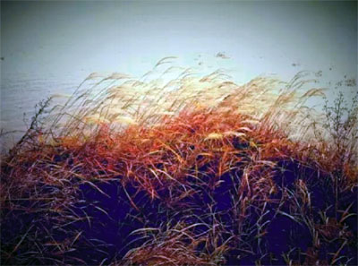 夏季的河灘,酷暑難耐,一株株蘆葦和風(fēng)而舞,葦影婆娑,勾魂兒似地招呼我們跳進(jìn)河里洗澡。小孩子喜歡玩水,是天性。說起來蘆葦還是我的“救命恩人”哩。記得我小時(shí)候?yàn)榱送嫠?,屁股可沒少挨揍??扇詴?huì)吵著哥哥帶我去,他也怕我不會(huì)游泳不安全,于是盡心地手把手教我游泳,那一回在狗刨了幾天后,我試著往深水區(qū)游,沒想到游遠(yuǎn)了點(diǎn),體力不支小腿抽筋了,嚇得只會(huì)大叫。后來經(jīng)過拼命掙扎和喝了好幾口水,沒了頭頂?shù)奈胰f幸抓住了河底的一截長(zhǎng)葦根才爬上岸來,嚇得臉色發(fā)白、嘴唇發(fā)紫,所幸人無大礙,經(jīng)過這一遭驚嚇,自此再與游水無緣,所以到現(xiàn)在仍是旱鴨子一個(gè)。雖然不敢下深水了,但炎炎烈日下,仍會(huì)一頭扎進(jìn)蘆葦茂盛的河汊里摸魚蝦、打水仗,用蘆葉折著小船、做著風(fēng)車,在蘆葦蕩里捕捉著小鳥、掏著鳥蛋,童趣無窮。