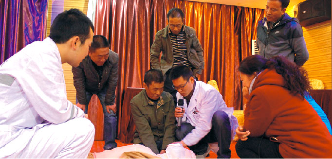 2016年3月24日,我院受邀于國(guó)網(wǎng)西藏直孔發(fā)電公司開展緊急救護(hù)培訓(xùn),由內(nèi)科醫(yī)生盤允、急診科護(hù)士肖明洋分別就“創(chuàng)傷院前急救技術(shù)”及“心肺復(fù)蘇概述”等相關(guān)專業(yè)知識(shí)進(jìn)行講解。