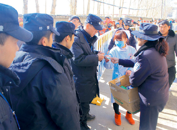 2016年2月5日,在春節(jié)(藏歷新年)來臨之際,西藏阜康(國際)體檢中心受拉薩市公安局的邀請(qǐng),為一年一度的“色拉崩堅(jiān)”重大佛事活動(dòng)執(zhí)勤的民警義診。 2月5日上午,西藏阜康(國際)健康體檢中心、阜康心腦血管分院派出專家及護(hù)理人員,攜帶16種普藥近400盒,與電子血壓計(jì),聽診器奔赴色拉寺,從曲米路開始一直到色拉寺,為駐守色拉寺朝佛路上的廣大執(zhí)勤民警送醫(yī)送藥?;顒?dòng)中,部分執(zhí)勤民警因寒冷、疲勞而出現(xiàn)有嗓子疼、拉肚子等身體不適,我們的義診醫(yī)療隊(duì)及時(shí)為其診療并贈(zèng)送藥物。