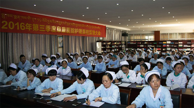 2016年9月23日下午16點整,西藏阜康醫(yī)院2016年第三季度護(hù)理質(zhì)量反饋大會,在阜康婦產(chǎn)兒童分院四樓會議室進(jìn)行。阜康醫(yī)院、阜康婦產(chǎn)兒童醫(yī)院、阜康心腦血管醫(yī)院及阜康體檢中心全體護(hù)士共130人參加了本次會議,會議由敖德秀總院長主持,在會議上院長就2016年我院護(hù)理質(zhì)控工作中存在的問題進(jìn)行了分析并提出對策。