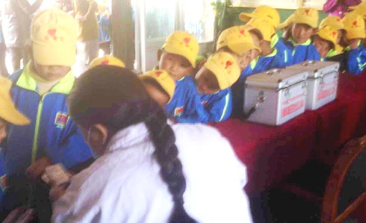 5月31日,受拉薩晚報(bào)社駐墨竹工卡縣甲瑪鄉(xiāng)赤康村工作隊(duì)的邀請(qǐng),由才仁、卓瑪次仁帶領(lǐng)的西藏阜康醫(yī)院社區(qū)義診隊(duì)來(lái)到甲瑪鄉(xiāng)中心小學(xué),為小朋友送來(lái)“健康大禮包”。本次活動(dòng)共計(jì)285名學(xué)生接受體檢,帶去20多種藥品價(jià)值約25000元。一聲溫馨的提醒,一盒充滿愛意的藥品,都讓孩子們感受著全社會(huì)的關(guān)愛。