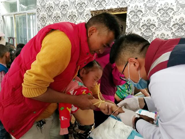 在那里,我們克服沒有床,沒有水,沒有公路,風(fēng)沙大,夜晚氣溫零下10度等艱苦條件完成了5035例的篩查,得到革吉縣縣委、縣政府、衛(wèi)計(jì)委及當(dāng)?shù)乩习傩盏母叨日J(rèn)可。也是在那里,我見到了肝包蟲篩查最重的一個病例,她讓我意識到了人類在疾病面前是多么的脆弱。