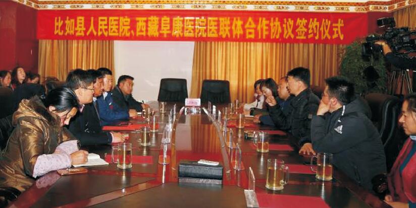 下午簽約儀式由縣委常委楊復(fù)洪主持,阜康醫(yī)院黨委書記兼董事長(zhǎng)王斌與比如縣衛(wèi)計(jì)委主任兼人民醫(yī)院院長(zhǎng)劉琳共同簽署了組建醫(yī)療“聯(lián)合體”的協(xié)議。 以緩解當(dāng)?shù)厝罕娍床∵h(yuǎn)、看病難,并提高當(dāng)?shù)蒯t(yī)療技術(shù)水平,簽約儀式結(jié)束后王斌在劉琳院長(zhǎng)的帶領(lǐng)下參觀了比如縣人民醫(yī)院、藏醫(yī)院等地。