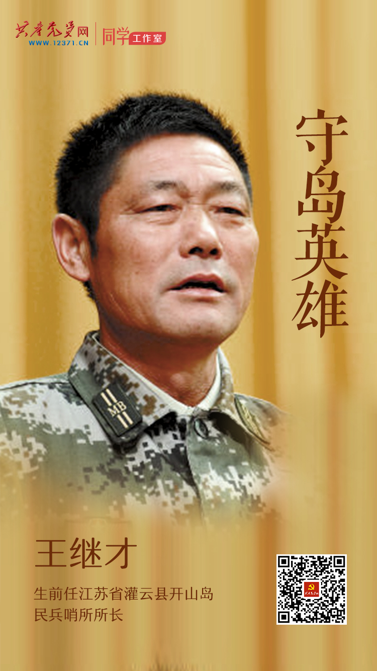 王繼才(1960—2018),江蘇灌云人。2003年10月加入中國共產黨。江蘇省灌云縣開山島民兵哨所原所長、開山島村黨支部原書記。自1986年起,毅然擔起守衛(wèi)黃海前哨開山島的重任。他和妻子以海島為家、與艱苦為伴,堅持每天升起國旗,每天按時巡島,護航標、寫日志,與走私、偷渡等不法分子作斗爭。2018年7月27日,在執(zhí)勤期間突發(fā)疾病,經搶救無效不幸去世。王繼才夫婦被評為全國“時代楷模”,王繼才后被追授為“全國優(yōu)秀共產黨員”。